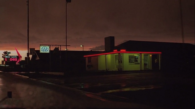 Some of these shots feature the small but brilliant cast, including Harry Dean Stanton, Nastassja Kinski, and Dean Stockwell. Stanton mesmerizes with mournful eyes and pained regret. Kinski in particular offers her own startling visual language in this film: transcendent blonde beauty radiating vulnerability and sadness.