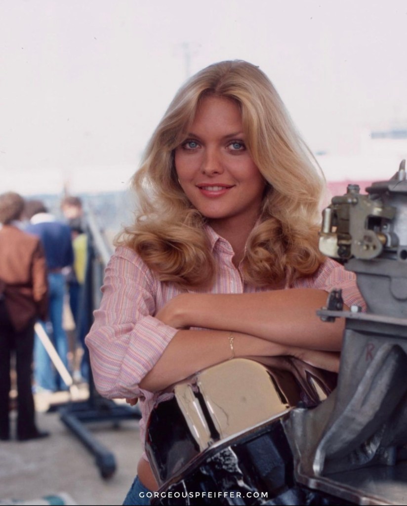 After starting her career with guest spots on television series like Fantasy Island and ChiPs, Michelle nabbed a regular gig on the Animal House sitcom adaptation Delta House. She played the sexy anthropology student with perfectly cascading blonde hair and a penchant for really tight sweaters, referred to only as “The Bombshell.” The 21 year old Pfeiffer was the token hot blonde, a staple of TV and film back then. The series only lasted thirteen episodes, so Michelle took her Bombshell act over to another ill-fated new series called—wait for it—B.A.D. Cats, which stood for Burglary Auto Detail, Commercial Auto Theft, a fictional LAPD squad charged with busting car thieves.