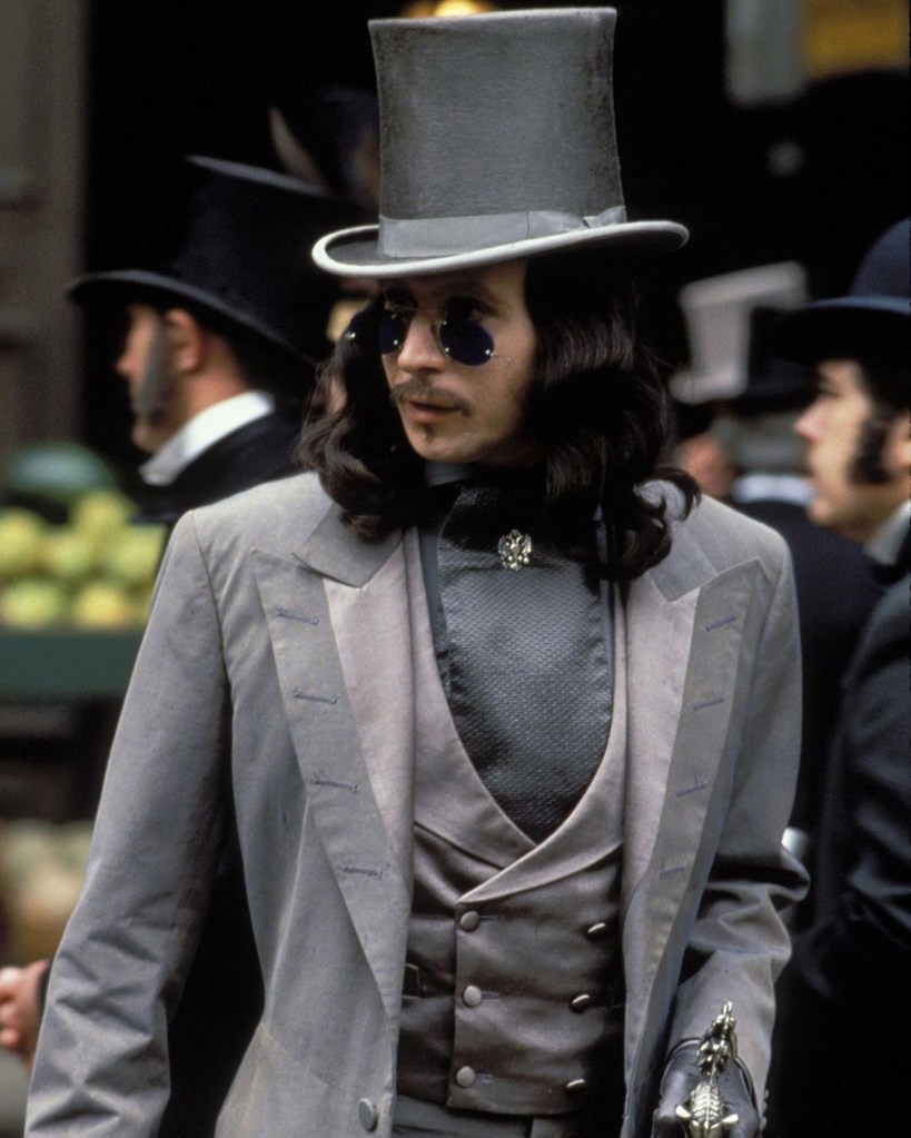 Gary Oldman famously said he took on the role of Count Dracula because, “ I wanted to say: ‘I’ve crossed oceans of time to find you.’ It was worth playing the role just to say that line.” His commitment to both the passion and the terror in the film is insanely impressive, plus he looks like a badass in several of the costumes he sports throughout. Terrifying in some, rock star handsome in others, Oldman is a sartorial splendor to behold.