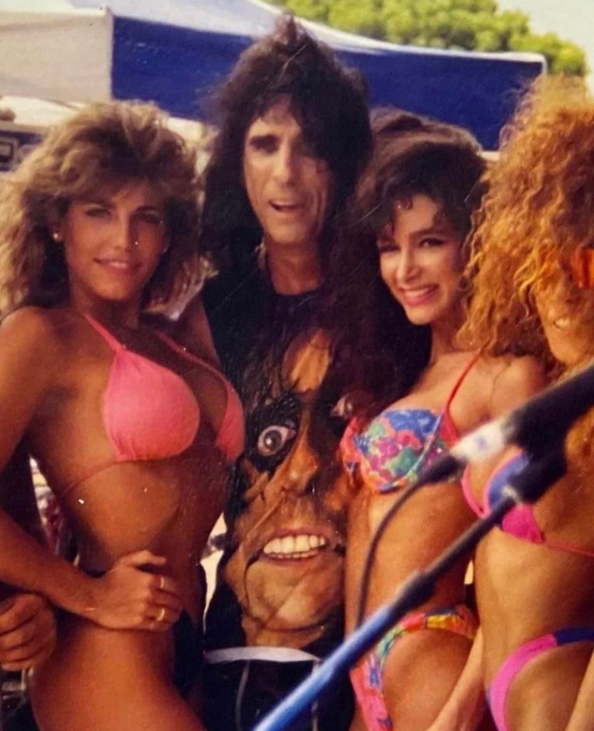 You may think you’re cool, but are you as cool as Alice Cooper wearing a shirt with his own face on it while flanked by bikini models? No, no you are not that cool.