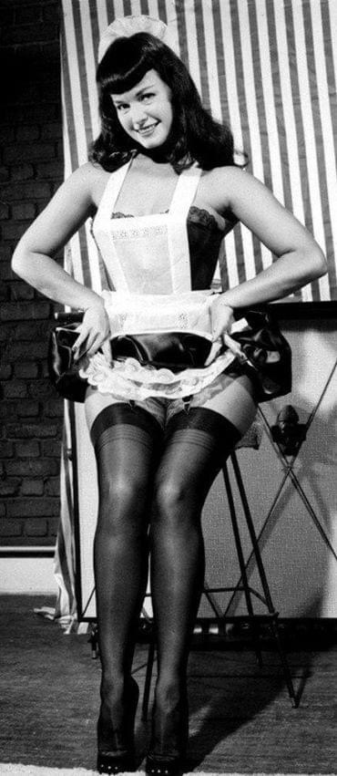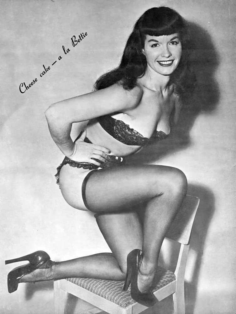 Photographers who worked with her always extolled the virtues of her work ethic, but also heaped praise on her natural instincts in front of the camera—they would often point their cameras and then let Bettie do her thing, because she had a knack for knowing what would work best for the shot. Standing just a shade over the average height for women at 5’5″ tall, Bettie sometimes managed to seem taller than that in photos. Certainly, her sky-high heels play a part, but for much of her modeling work she also wore thigh highs, which draw the eyes upward, creating the impression of longer legs.