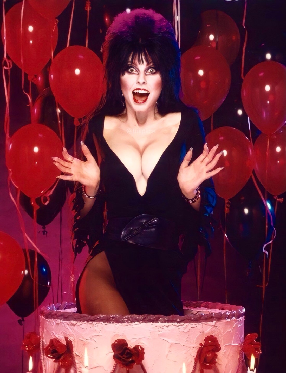 Even though it’s my birthday soon, I’ll gladly share this gift with all of my friends: Yep, that’s Elvira, Mistress of the Dark herself, looking really excited to celebrate my latest trip around the sun. I’m just so honored she’s popping out of my cake! What a surprise! I can only imagine how many similar … Continue reading Elvira, Mistress of the Cake