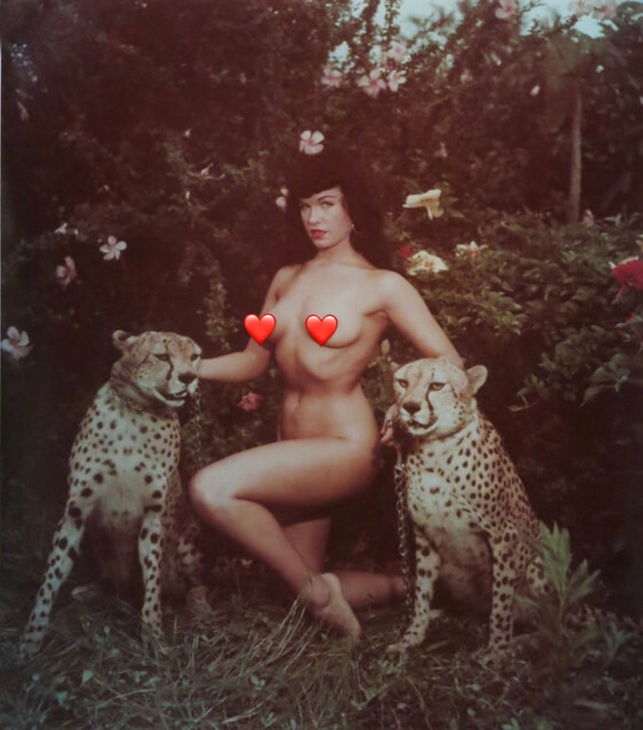 These photos of Bettie as the savage jungle girl, surviving harsh jungle life on her wits and athletic (smokin’ hot) body alone, can be found on an infinite amount of merchandise, tattooed all over people’s bodies, and in every corner of pop culture, from album covers to comic books and beyond. It’s understandable why these photos are so often reproduced: Bettie looks positively fierce and outrageously sexy. They’re iconic shots of an iconic woman being an icon.