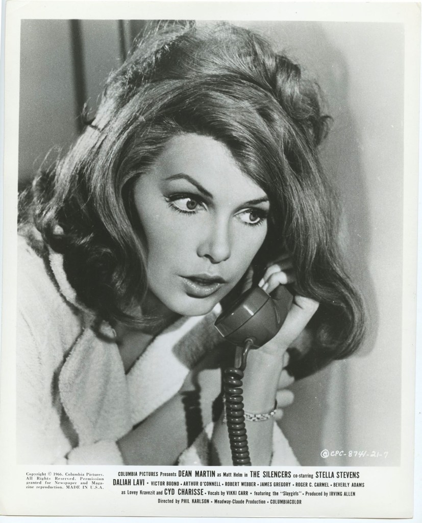 In honor of Stella Stevens, here’s a dazzling array of shots from her role as the beautiful but bumbling secret agent Gail Hendricks in the swingin’ sixties Dean Martin vehicle The Silencers (1966). The first of four movies based on the popular Matt Helm spy novels, The Silencers is a fun and fluffy spy romp. Stella and Deano had fantastic chemistry, so their scenes are charmingly sexy and silly. In my opinion, the film featured Stella at her most luminous, while also providing ample evidence of her terrific comedic talents. She’s distractingly beautiful and nails every bit of physical comedy that the role calls for. She’s an absolute delight to watch.