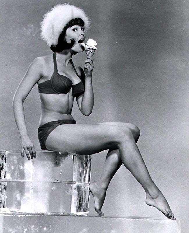 Let’s begin with a shot—or, he’ll, a big old swig—of tequila to celebrate ten random image posts. Salud!Donna Summer, moaning into the most phallic microphone of all time. The BBC declared that Summer had 23 (simulated?) orgasms during the epic, 17-minute track, “Love To Love You Baby.”Just your average 1980s-1990s bikini contest. I especially love the juxtaposition of voluminously coiffed contestants and haphazardly scrawled graffiti. Masters of horror Stephen King and George Romero posing in front of a Creepshow billboard on the Sunset Strip, 1982. Actress and model Barbara Leigh played Vampirella on a series of comic book covers and at conventions in the 1970s. She was cast in a Vampirella movie from Hammer Film that never got made. Bummer. You knew I had to slip in a Michelle Pfeiffer photo someplace, didn’t you?Your grandparents were once young and carefree, kids. Batgirl herself, the outrageously hot Yvonne Craig. Arnold Schwarzenegger and Grace Jones hamming it up on the set of Conan the Destroyer, which played constantly on HBO in the ‘80s, and you betcha I watched it every chance I got.A passionate embrace on a bucolic college campus. Art by legendary pulp master Paul Rader. Phasers set to stun: Italian actress Leonora Ruffo in the 1966 sci-fi movie 2+5: Missione Hydra, known as Star Pilot in English. Keith Haring at work. Based on the poster for The Mean Season, probably in 1985.International one-sheet for the criminally underrated The Pope of Greenwich Village (1984), retitled Village Dreams outside the United States. More Yvonne Craig, because she was everything. This time she’s thawing the polar ice caps all by herself. Marilyn being absolutely ravishing. Charlie’s Angels: my happy place. Cheeky superhero art by Kerry Callen. It’s all fun and games until someone gets big welts on their thighs. Office life in the 1960s. Firework: Katy Perry, 2011. Woody Harrelson and Wesley Snipes, bad as they wanna be, in White Men Can’t Jump, 1992. Director Joe Dante directs Dee Wallace during the bravura opening sequence in The Howling (1981), one of my favorite movies of all time. Soho Fair spaghetti eating contest, 1958.This is why your parents called it “devil music.”