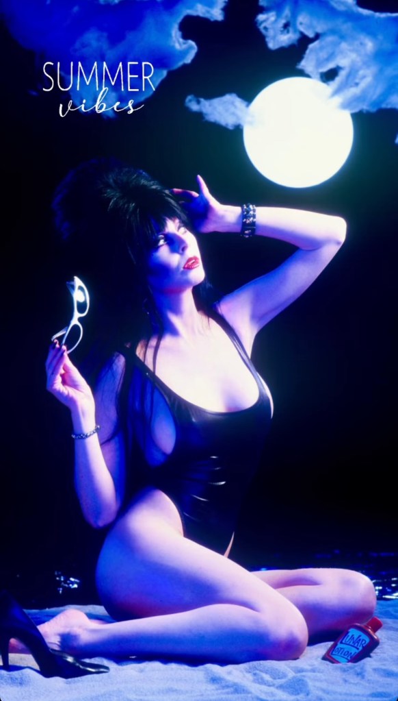 Speaking of beloved, my favorite autumnal deity, Elvira, Mistress of the Dark (Cassandra Peterson) shared this beautiful, classic image to her social media accounts on the first day of summer. Leave it to the most spooktacularly bodacious babe around to infuse beach season with some bone-chillingly eerie October vibes.