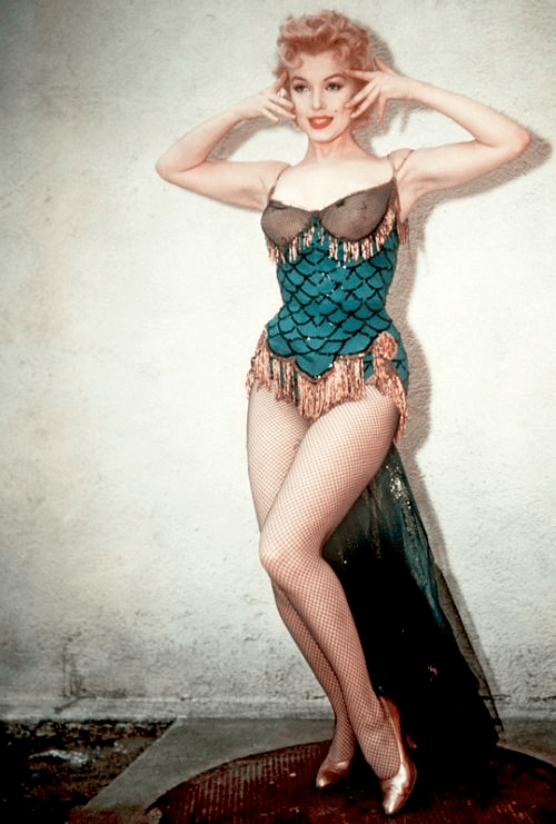 A while back, we invited Bettie Page to the stage for Fishnet Friday and to say she brought down the house is an understatement. if anyone else could equal the Queen of Pinups it’s The Blonde Bombshell herself, American icon Marilyn Monroe. From rocking the ‘nets alongside leggy pal Jane Russell in Gentlemen Prefer Blondes (1953), or as a saloon singer in River of No Return (1954), or in several memorable photo shoots, Marilyn probably did more to popularize this style of tights than most anyone else in the twentieth century.