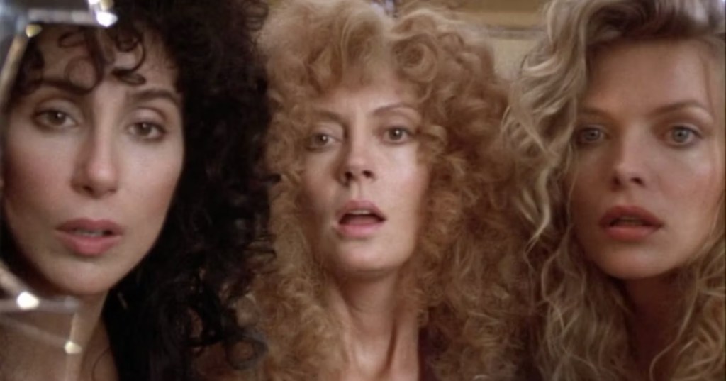 With that October chill in the air and Halloween fast approaching, I’ve got a trio of sexy and resilient witches on the brain these days. Alexandra, Sukie, and Jane form the triumvirate of powerful practitioners of witchcraft in the sleepy New England town of Eastwick. When a devilish interloper moves to town, strange occurrences become commonplace and the smirking stranger takes a lascivious liking to the three besties. To this point, the women were living quiet, ordinary, even boring lives in Eastwick, until Daryl Van Horne stirs something inside them—a calamitous concoction of sensual desire and black magic. The witches eventually break free to Van Horne’s seductive spell and unlock their full, majestic powers as witches to combat the evil Van Horne’s fire and brimstone.