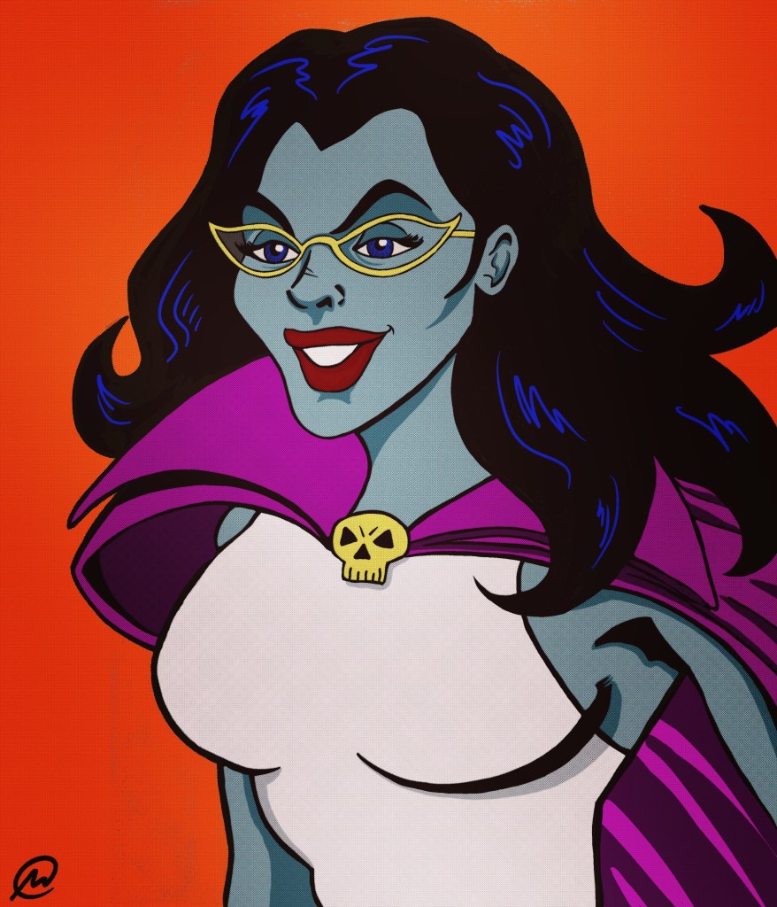 I only recently discovered the existence of horror comics host Winnie the Witch, but boy am I glad I did. A leggy, blue-skinned witch with a mod spin—she gives off a sexy librarian vibe with those glasses—Winnie cheekily hosted a series of horror comics published by Charlton during the 1960s and 1970s. At some point she was redesigned with green skin and a new outfit, but the classic Winnie look reigns supreme. I like Winnie so much I did a little drawing of her, just for fun: