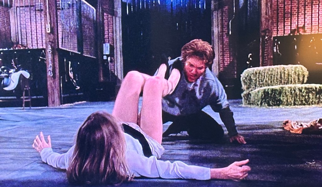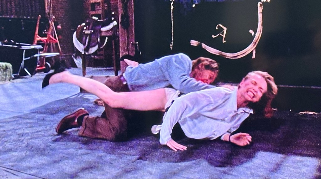 I adore Mike Nichols’ Wolf (1994), but every time I watch it—and I try to watch it every October—I’m utterly gobsmacked that he got Michelle Pfeiffer to film that completely bonkers final showdown. As good guy Wolfman Jack (Nicholson) looks on from inside a cage, bad guy Wolfman James Spader uses his hairy paws to repeatedly attack, maul, grope, and hump Michelle Pfeiffer. It’s all set in glorious slow motion, an outrageous spectacle that I watch with my jaw hanging down every time.