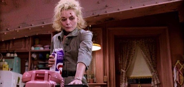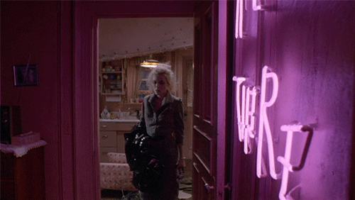 That scene is amazing enough, but then what follows for Selina is an absolutely iconic cinematic moment. From director Tim Burton’s staging of the scene, to Michelle Pfeiffer’s jaw dropping performance, and on to the stunning set design of Selina’s apartment, it’s a flawless four minutes and change. I am completely enraptured by it every time I watch, almost as if I’ve never seen it before. This is thanks largely to Michelle’s tour de force performance. Retuning home in a daze—reanimating is a bitch—Selina mutters, “Honey, I’m home … Oh, i forgot. I’m not married.” Soon enough she’s jolted out of her undead stupor. A woman possessed, strutting around the ultra-girlie pink apartment and trashing her old way of life, Michelle sells Selina’s drastic change in personality and demeanor with every confident step she takes or maniacal grin she makes.