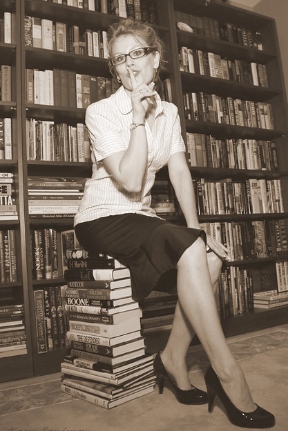 This lovely woman appears to have absolutely nailed the sexy librarian fantasy look, doncha think?