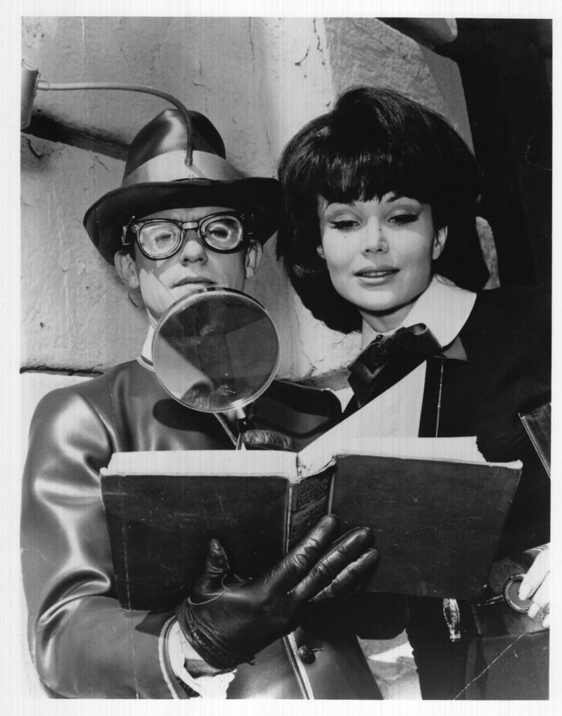 Holy magnified small print, Batman! Roddy McDowall as the Bookworm and Francine York as Lydia Limpit in Batman (1966).