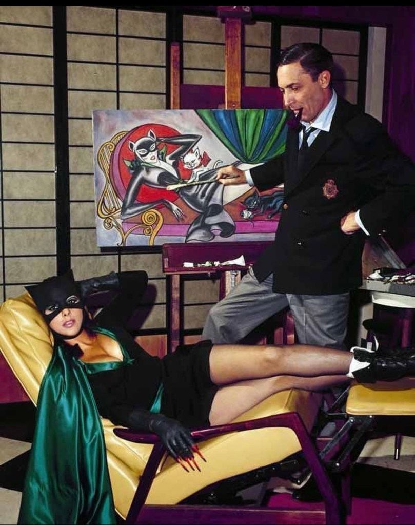 The secretarial pool at the office just got a lot spicier with the reinstatement of casual Fridays. For more from Folies de Paris et de Hollywood, head over to the indispensable resource for pulp and vintage lovers, Pulp International.Rawr: Bettie Mae Page, Queen of the Jungle.She blinded me with science!The only thing better than one Catwoman is multiple Catwomen. Meow!Carrie Fisher and her stunt double Tracey Eddon with Harrison Ford’s stunt double Vic Armstrong on the set of Return of the Jedi. Boy, that’s one friendly set!And you think you’re having a rough week.Some good tunes and a little hair of the dog that bit ya.That’s a question we’ve all been asking for decades. Sweet baby Jesus, Cheryl Ladd always makes us FEEL things, doesn’t she? Yowza.Okay, what the hell are “Giant Killers,” and where can we get one?Christopher Walken, bad as he wants to be, in Abel Ferrara’s gangster masterpiece King of New York.The sultry and talented Debbie Harry as a lifetime open invitation to drop by the Lounge any time she feels like it. Okay, who is this Catwoman model posing for Bob Kane, and where can we get one?If they’re having trouble getting started, this car babe has been known to rev up more than a few struggling engines before.We need this guy’s outfit. Those pants are mint.This compilation of garage rock and punk has such a spectacular title and album cover, that I’m now on a quest to obtain a copy. Also, be on the lookout for a future post here called “Whiskey, Girls, and Pasta” because I’m totally stealing this title.According to many sources, including Burt Ward himself, he and Adam West were bedding Bat-groupies left and right during the height of Bat Mania. The looks on their faces here sure make me believe those stories.Lounge fave and stone-cold fox the late Candice Rialson, in the absurdist musical comedy Chatterbox, in which her vagina has a voice and personality of its own.Dancing the night away to celebrate the twentieth random image post!
