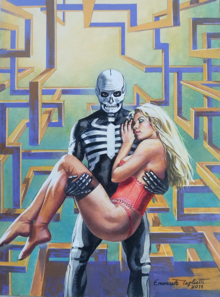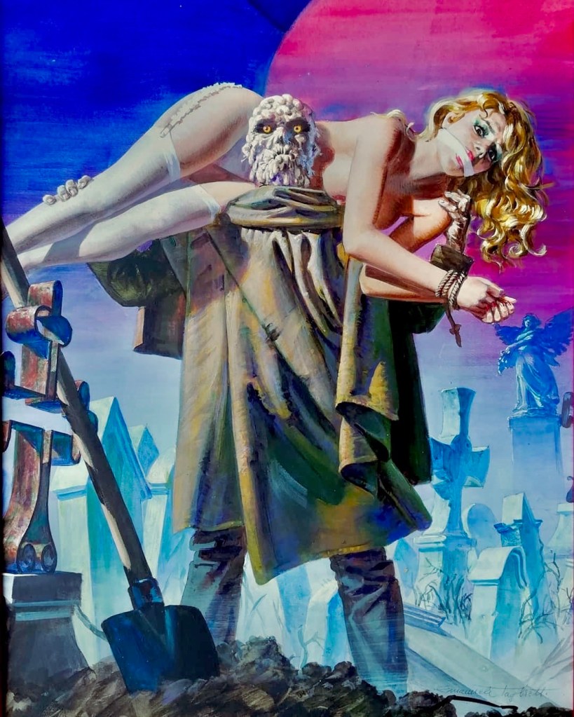 Italian illustrator Emanuele Taglietti was born in 1943. His dynamic art is a salacious stew of horror, sex, and violence that practically leaps off the page and slaps you right in the face. The scenarios depicted are never anything less than completely insane, like hopped up B-movies on steroids. Here’s but a small sampling of some of Taglietti’s masterful sexploitation style.