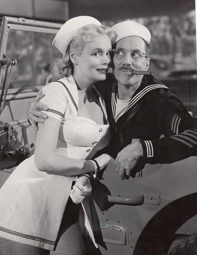 Lovely, innocent-looking, well-endowed comedienne Marie Wilson was a featherbrained delight instantly reminiscent of the zany Gracie Allen. Unlike Allen, however, Marie was a knockout–with high cheekbones, a wide slash of a mouth and a figure that wouldn’t quit.