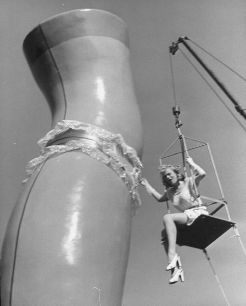 Ahem. Always a popular cheesecake model, Wilson’s figure was so revered that she even served as the inspiration for a massive, 35 foot leg statue displayed outside a hosiery manufacturer in Los Angeles. They certainly chose the right woman to help promote their new nylons.