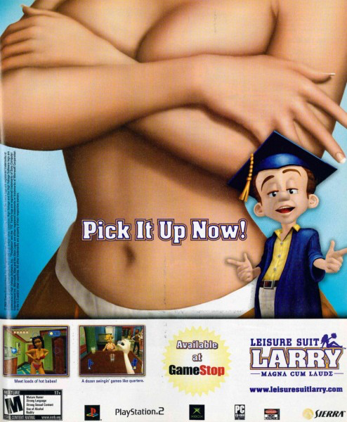 She seems like an experienced pro with that joystick. Ahem.Hello, ‘90s high-cut thongs. Oh, how we’ve missed you.She killed Chester Cheetah to make that tank top. A regular glutton for punishment. I can’t think of anything more boring than a fishing video game, but points for setting “SIZE DOES MATTER” in all caps, bold, 50-point font size. We get it, guys!Dive into the future of gaming…leave your clothes behind. Stone cold she-fox!For the dom or sub video game fan in your life. Available at GameStop, you say? BRB. Great for parties—especially when your guests are super hot and suck at strip poker!