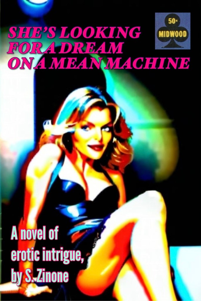 As a lifelong artist myself, I’ve been struggling to accept art generated from artificial intelligence (AI). It’s seemingly everywhere now, so whatever ethical qualms I might have about disrespecting artistic integrity or taking work away from real artists seem fairly moot at this point. I’m still holding onto those reservations, mind you, but I’m also a sucker for anything Michelle Pfeiffer, so, when I recently experimented with an AI art generator for the first time, naturally I plugged in prompts all about Michelle. The results were, uh, mixed, at best. One came out pretty cool though, cool enough for me to take it into the Pronto app (which is a very fun app) to add some lurid text (inspired by “Cool Rider” and Grease 2) and an old pulp publisher’s logo. Basically I made a fake pulp novel cover featuring my pfavorite subject.