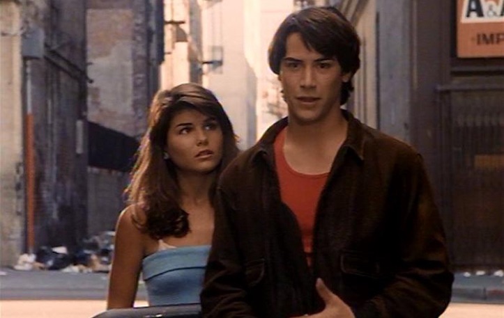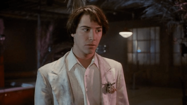The hijinks are deliberately, delightfully wacky. Reeves accidentally sells Loughlin to a pimp! He turns comedic action star to rescue her! Loughlin loses her prom gown to a prostitute and, wearing only her elegant Galleria-purchased prom night underwear (because this is an eighties teen movie, after all), gets handcuffed to a dilapidated bed in a sleazy motel room!