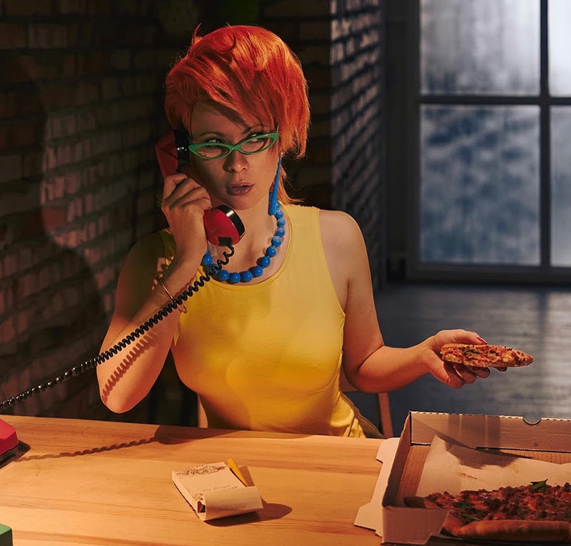 Janine’s animated form was of course based on Annie Potts, who played her in the original Ghostbusters movies. The animators had some fun enhancing Annie’s natural charisma, creating an animated version that leans into the character’s sexy, spunky, smart-girl vibes. This talented cosplayer, Jannet Vinogradov does a bang-up job bringing that animated version of Janine to vibrant, three-dimensional life.