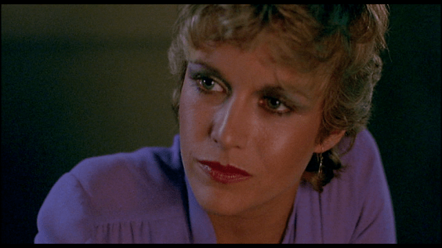 This was at least Hubley’s second go-round as a hooker with a heart of gold, having also played one in Paul Schrader’s relentlessly bleak Hardcore (1979). In Vice Squad, she’s put through the wringer but performs admirably under such harrowing circumstances. She’s viciously beaten several times by Hauser in scenes that look disturbingly realistic. After Princess has been smacked around and bonked on the head with a stool, she simply goes back to workin’ the streets a few minutes later, as if nothing happened. She’s a tough broad! She’s also very sexy, and Sherman politely obliges our need to see Hubley in lingerie by helpfully providing lingering shots of her exceedingly sexy stems in silk stockings and garter belts.