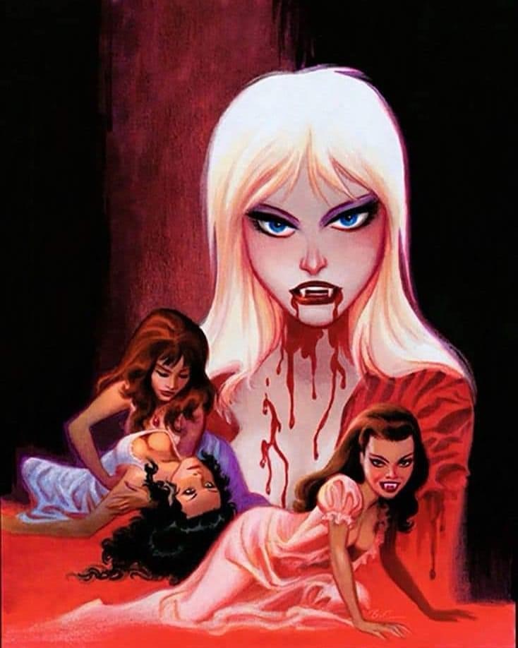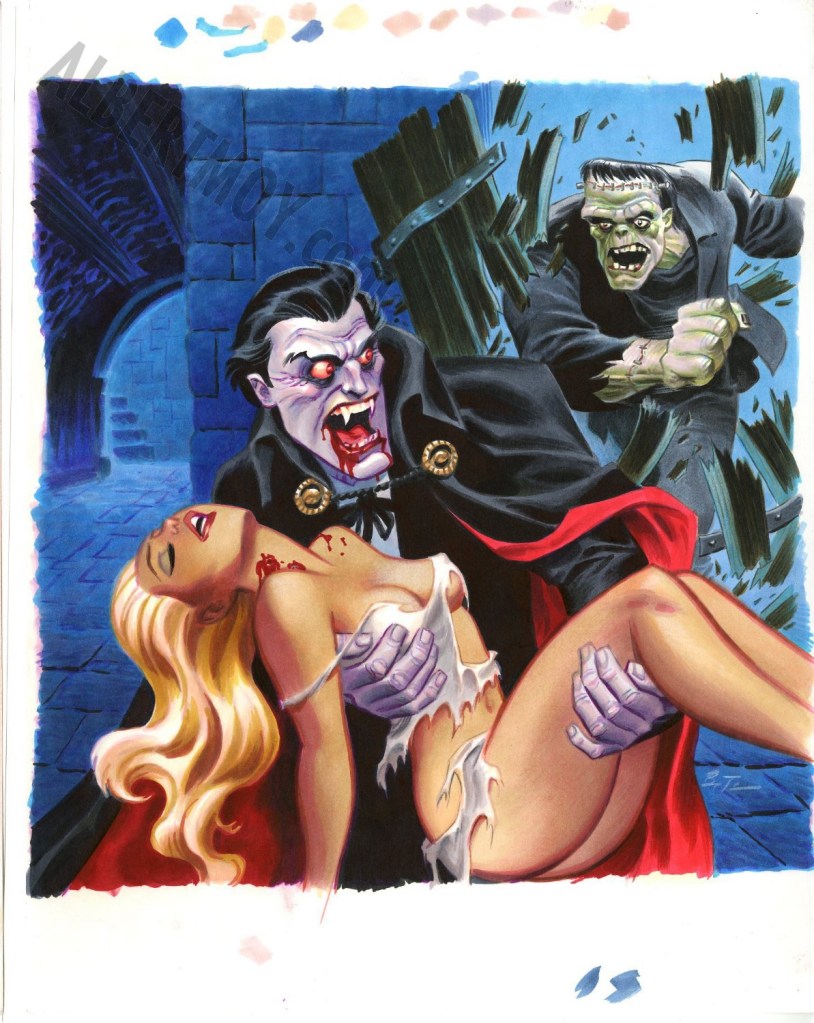 While Timm is most linked to Batman and other DC properties in many people’s minds, he’s also created a tremendous amount of horror art over his career. Clearly influenced by, and a fan of, the classic Hammer Horror Films—and even illustrating his own Hammer art, like the poster style work above for Dracula A.D. 1972—Timm’s horror art is filled with half-naked beauties being tormented by bloodthirsty vampires, ferocious beasts, and rotting undead zombies. It hits all the horror fan sweet spots, and if you grew up on Hammer Horror and the Golden Age of mass market paperback horror fiction, this gallery of Timm’s work will be right up your alley.