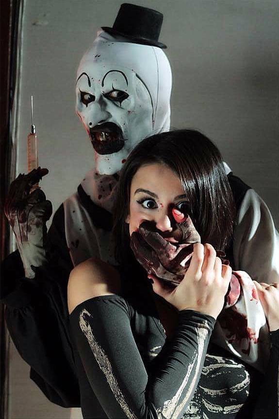 Jenna Kanell as Tara and David Howard Thornton as Art the Clown, clowning around on the set of Damian Leone’s Terrifier (2016).