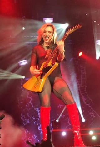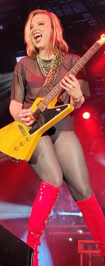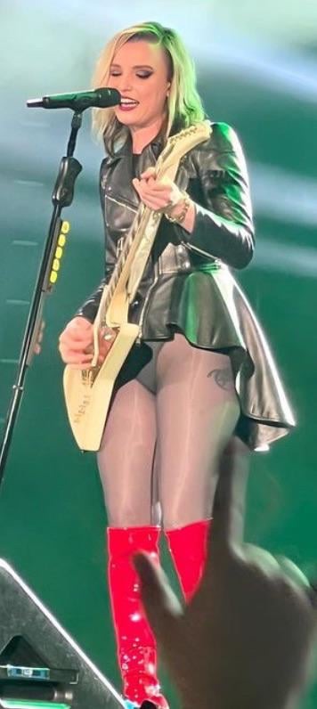 Halestorm lead singer and guitarist Lzzy Hale certainly brings the heat whenever she straps on her axe and takes to the stage, and especially when she’s wearing shimmering pantyhose over her long, luscious legs, sexy red high-heeled boots, and high-cut panties that leave little to the imagination. Scorching! Enjoy this not-so-random image dump of Hale tearing it up onstage from a few years back. Imagine being in the front row with those thighs* just a few, tantalizing feet away from your disbelieving eyes?? Yikes. We’d need the smelling salts, for sure.