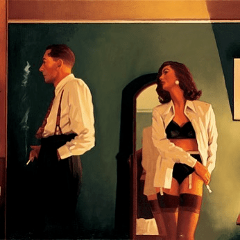 Well, it didn’t evaporate within the art world, as evidenced by the disdain for Vettriano’s work. It’s fine, he certainly wasn’t for everyone, and yet he made serious coin because “unsophisticated mainstream” buyers bought his stuff. For what it’s worth, I like a double cheeseburger in a greasy wrapper. Not all the time, mind you, but there’s a time and a place for it, and in that time and place they’re frickin’ delicious. It’s the same for art like Vettriano’s—it’s awfully tasty when you’re in the right mood for some noir-flavored fun.