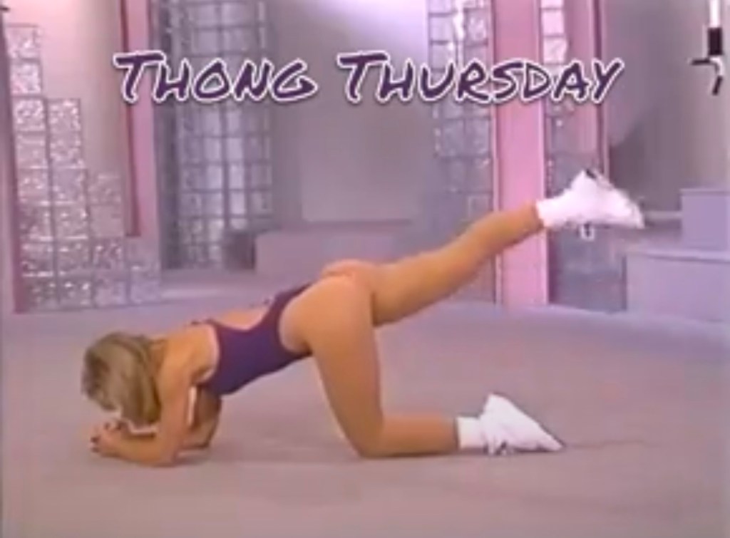What a time it was to be young and alive, and with a TV in your dorm room to waste away hours that should’ve been spent studying, but instead were spent watching fitness goddesses like Tamilee Webb do their thong thang. And oh what a thong thang it was.