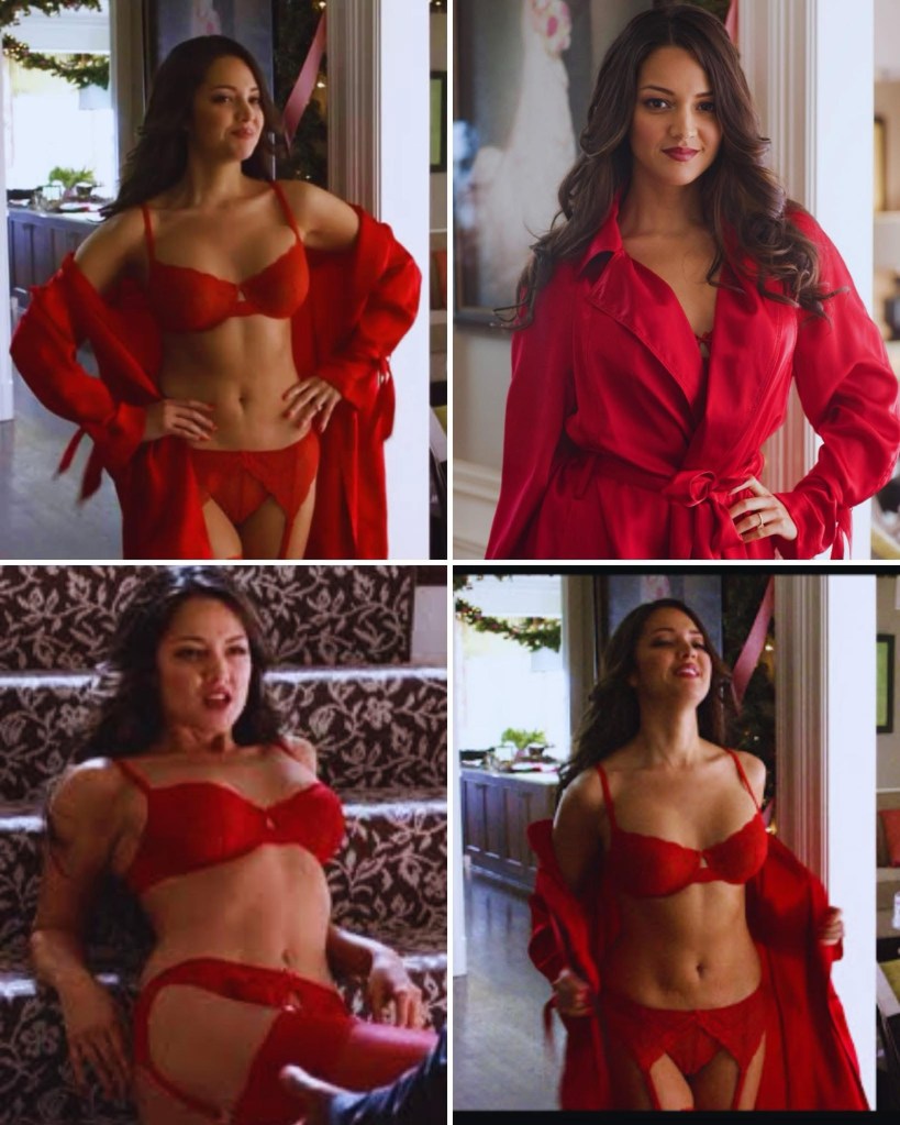 Hope you all had a marvelous Christmas unwrapping gifts from Santa. On a related note, and to put the “Hot” in “Hot Shots,” here’s the total smoke show Paula Garcés unwrapping herself in a very memorable scene from a very forgettable movie, the lame A Harold & Kumar 3D Christmas (2011). Thank you for your service in that stinker, Paula. We salute you!