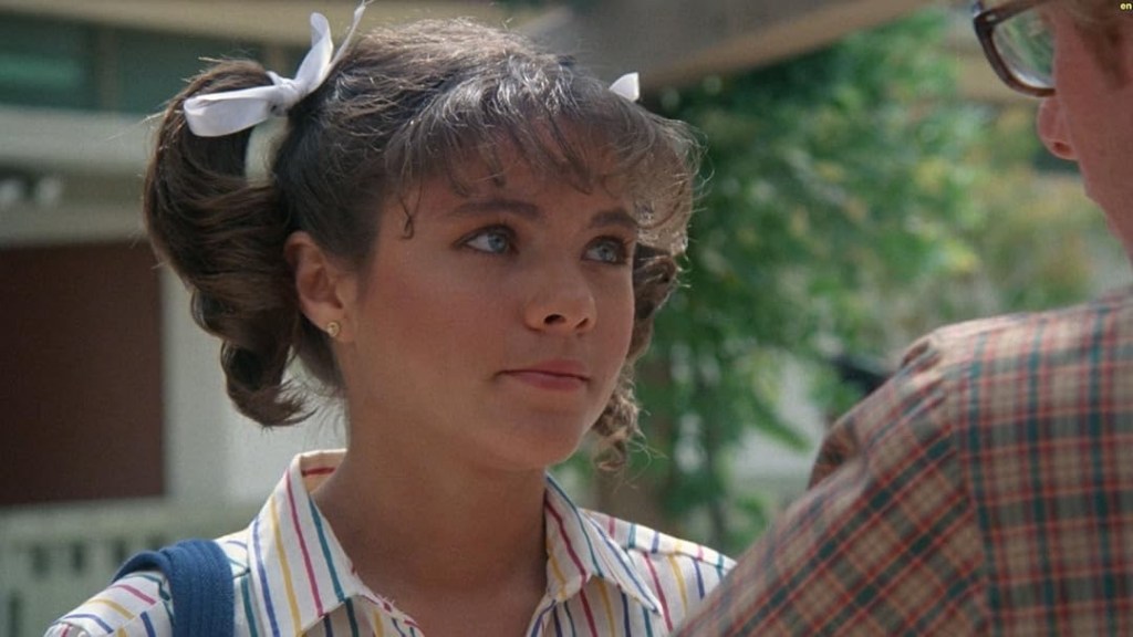 Written and directed by Robert Vincent O’Neil, Angel’s plot is summed up beautifully by its all-time great tagline: “High school honor student by day. Hollywood hooker by night.” Petite, fresh-faced beauty Donna Wilkes stars as Los Angeles area high schooler Molly—hooker name: Angel—whose delinquent parents split and left her to fend for herself. By day, Molly goes to a fancy private school, gets good grades, and looks sweet as pie in her pigtails, stylish blazer, and schoolgirl miniskirt. By night, Angel prowls Hollywood Boulevard in tight tops, micro-minis, and heels for johns because she needs to make her own living since being abandoned. No one at school knows what Molly does during her after hours time. While she’s alone at home, she’s become part of a found family at her night job, consisting of a motley crew of fellow prostitutes and street performers.