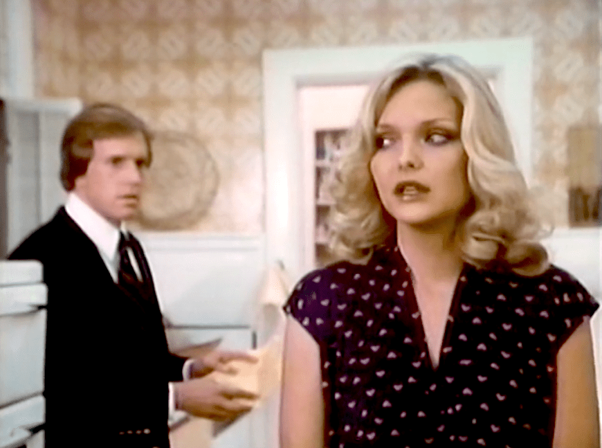 It’s interesting, from a historical perspective, to see a young Michelle alongside two established stars of that era, Simon & Simon’s Jameson Parker and The Bionic Woman herself, Lyndsay Wagner—both of whom Michelle would soon surpass on the road to movie stardom. The telefilm is a slog though, and not worth your time, so just fast forward to Michelle’s scenes and thank the Hollywood gods that she managed to rise above this mess with Grease 2 the following year, and then Scarface in 1983.